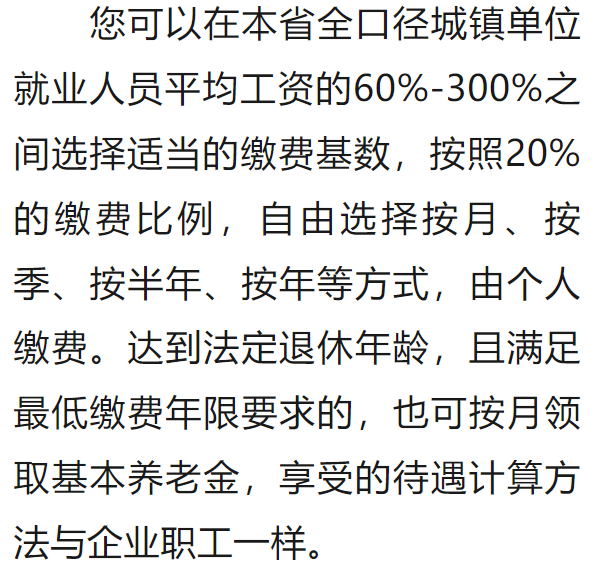 情況三:制度實(shí)施時(shí),您距60周歲的規(guī)定領(lǐng)取年齡超過(guò)15年,應(yīng)按年繳費(fèi),累計(jì)繳費(fèi)不少于15年才能領(lǐng)養(yǎng)老金。